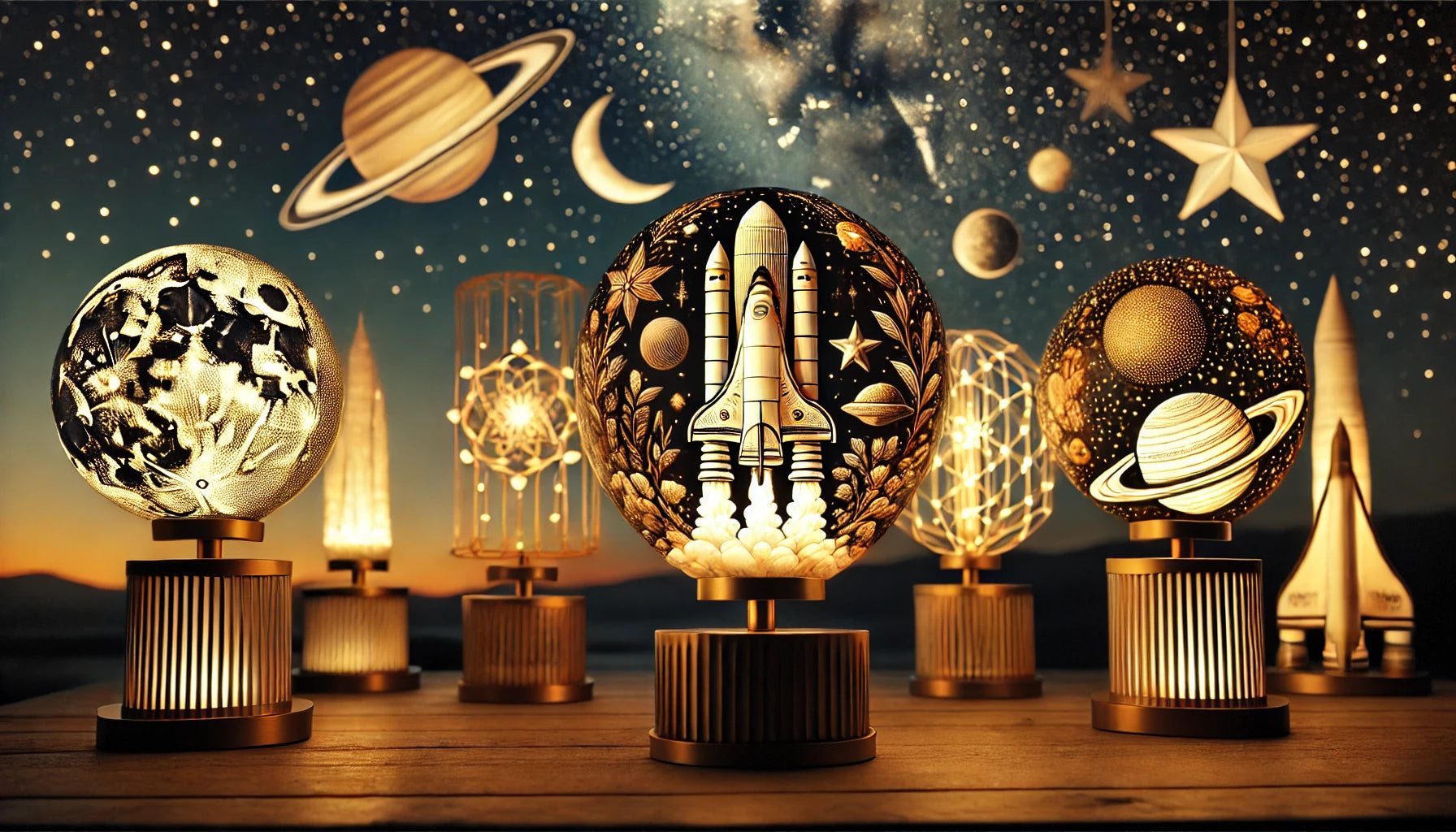 Nos lampes astronautes et projecteurs sont fabriqués avec des matériaux de qualité supérieure, combinant verre cristal, métal robuste et bois naturel pour une finition élégante. Chaque pièce est pensée pour s’intégrer à tout type de décoration, que vous aimiez le style moderne, minimaliste ou inspiré du ciel étoilé.